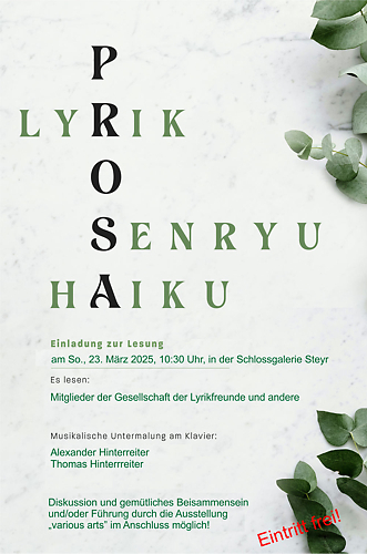 Lesung anlässlich unserer Ausstellung "Various arts" am 23.März 2025 in der Schlossgalerie Steyr