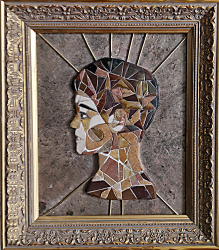 SVerschiedenfarbige Steine aus der Enns und der Steyr,Laaser Marmor und Messingdraht auf Kunststeinplatte, alter Rahmen,28 x 32 cm, 2025