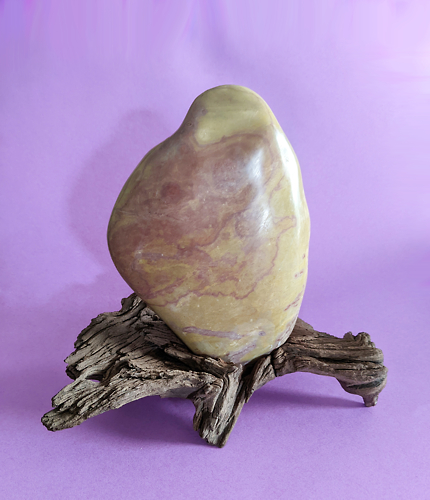 "Sandsturm" Stein gefunden 2025 in der Steyr, geschliffen und poliert,Dai aus Mobaniholz,Breite: 19 cm, Tiefe: 10 cm, Höhe: 19 cm